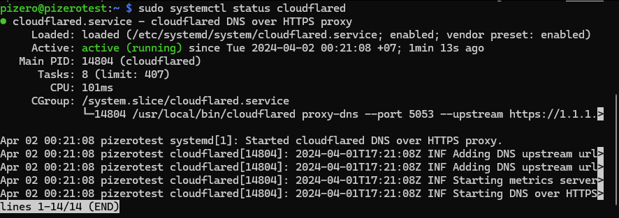 sudo systemctl status cloudflared