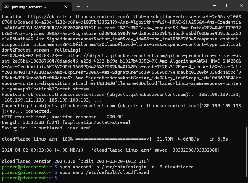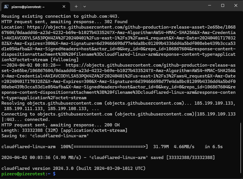 wget https://github.com/cloudflare/cloudflared/releases/latest/download/cloudflared-linux-arm