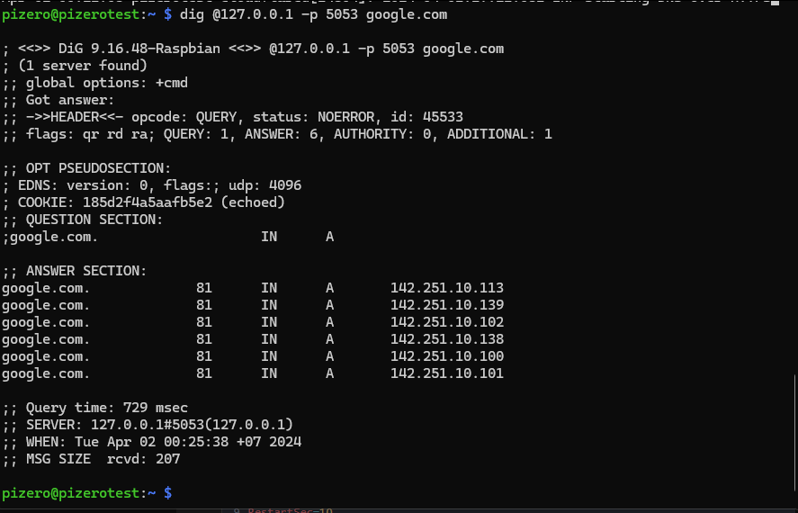 dig @127.0.0.1 -p 5053 google.com