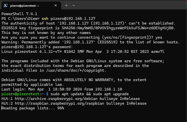 หลังจากนั้นให้อัพเดท pizero ก่อนโดยใช้คำสั่งด้านล่าง