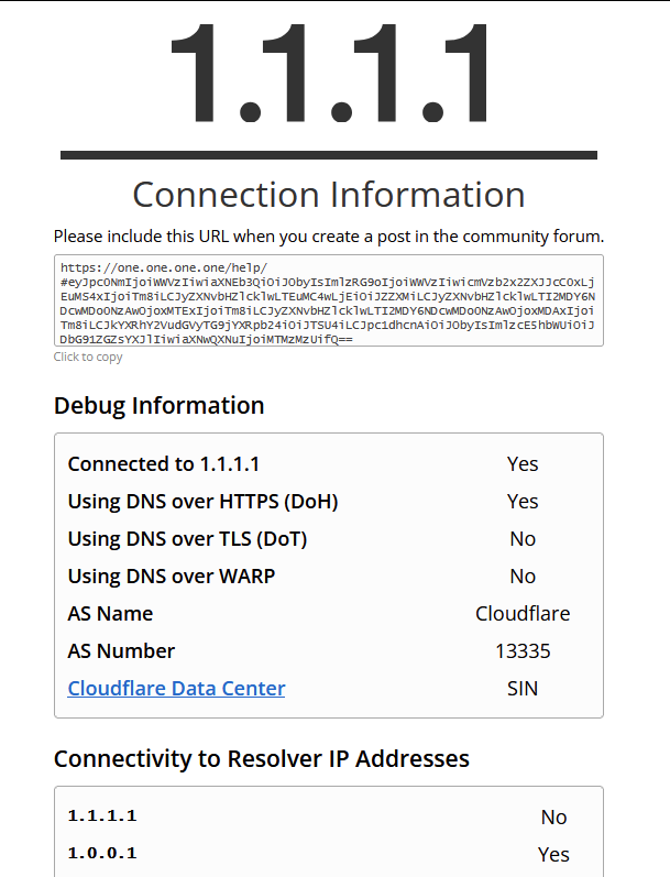 ทดสอบว่าใช้งานได้หรือไม่โดยการไปที่ url https://one.one.one.one/help/
