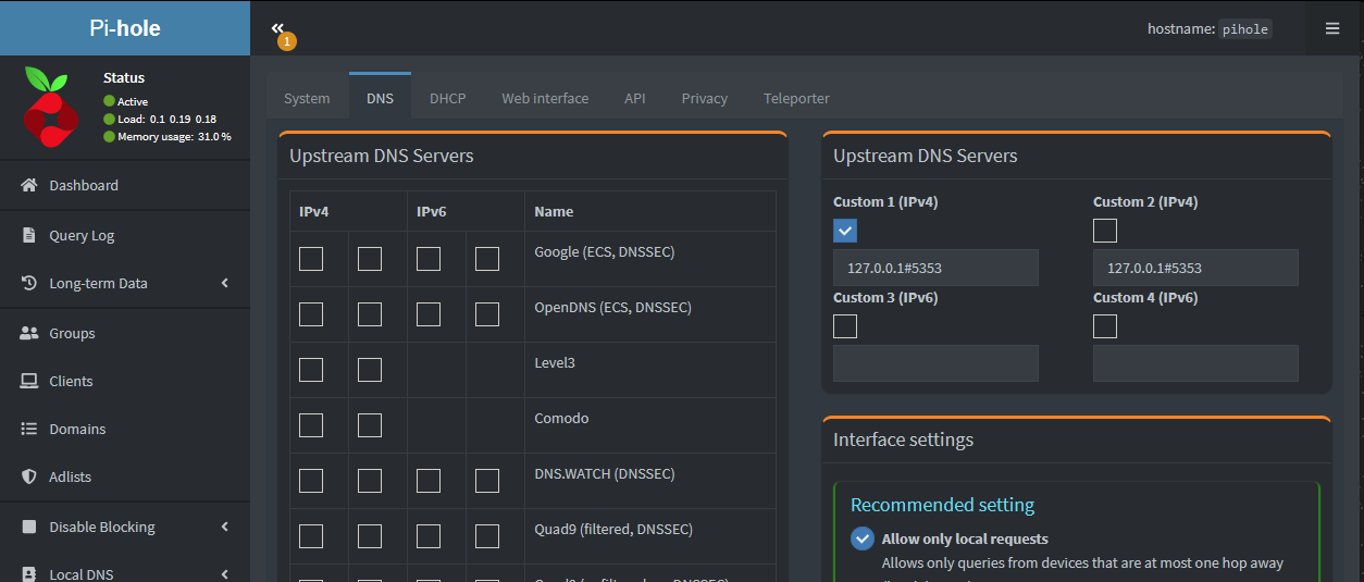 ตั้งค่า Pi-hole ให้ใช้งาน Cloudflared