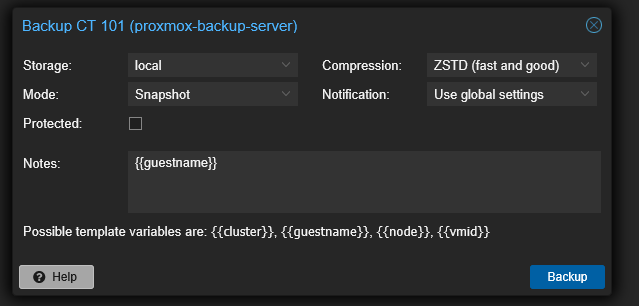 หลังจากเรียบร้อยแล้วก็สามารถใช้งาน Datacenter > Backup ได้ตามปกติโดยจะมีตัวเลือกของ pbs เพิ่มเข้ามาแล้ว
