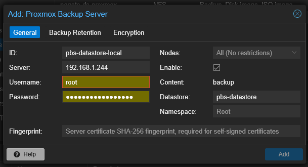 - server สามารถใส่ ip ของ pbs lxc ได้เลยไม่ต้องใช้ ip ของ tailscale
