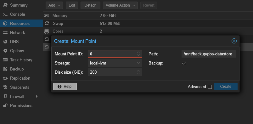 - เป็น local backup ในตัว server node โดยต้องมีพื้นที่อย่างน้อย 210GB (10 สำหรับ LXC และ 200 สำหรับ local backup)