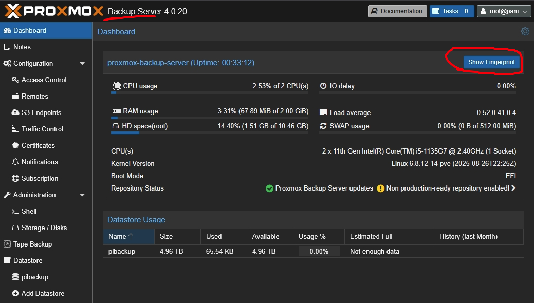 หรือก็คือฝั่ง Proxmox นั่นแหละแต่เราจะไม่ยุ่งกับ PBS LXC แล้วตอนนี้