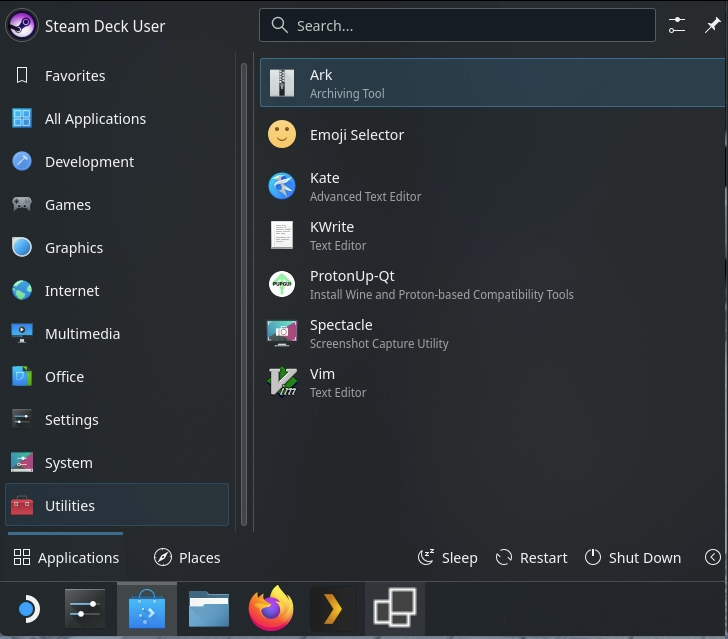 เมื่อติดตั้งเสร็จแล้วให้เปิดโปรแกรมขึ้นมาโดยไปที่ โลโก้ Deck ซ้ายล่าง (คิดซะว่าปุ่ม Windows) แล้วดูที่ Utilities > ProtonUp-Qt