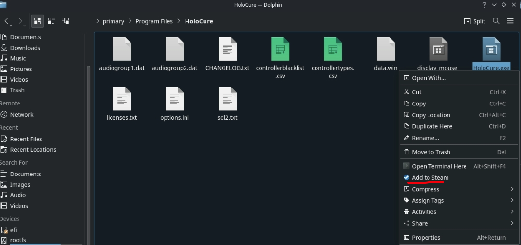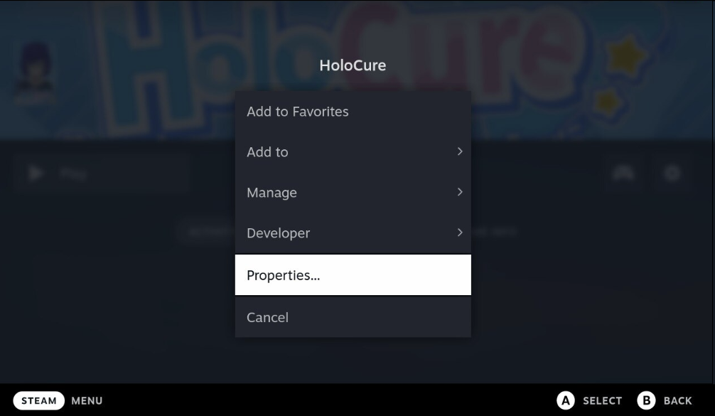 จะเห็นว่ามันขึ้นมาเป็น HoloCure.exe แนะนำให้ไป rename ให้เรียบร้อยโดยไปที่เฟืองด้านขวาล่าง > Properties