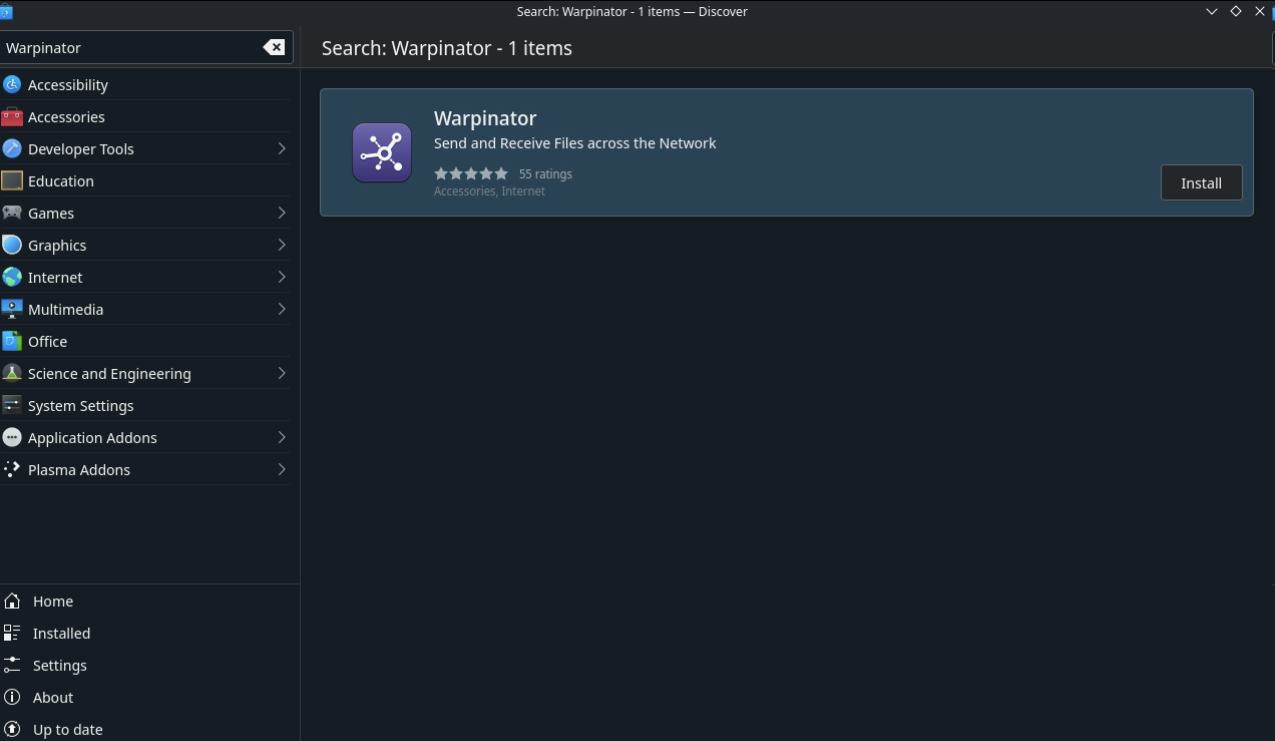 เปิด Steam Deck Desktop Mode ค้นหา Warpinator โดย Search ลงได้จาก Discover เลย