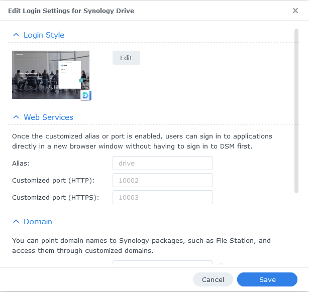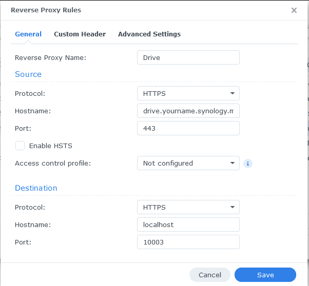 สำหรับผู้ที่ใช้ Local DNS หรือ Reverse Proxy อยู่ ก็ตั้งค่าในส่วนของ Customized port เพิ่มเฉพาะ HTTPS ก็ได้ Default ตามรูปคือ 10003 หลังจากนั้นก็ไปตั้ง Local DNS หรือ Reverse Proxy ตั้งชื่อตามใจชอบ