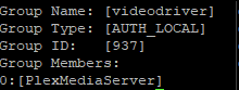 sudo synogroup -get videodriver