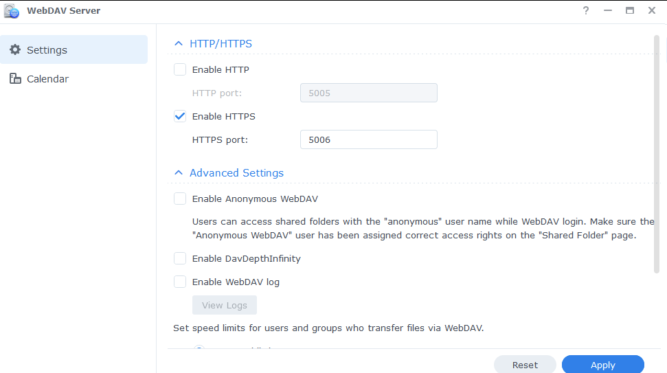 ถ้าต้องการใช้ WebDAV กับ Synology ให้ทำการติดตั้ง WebDAV Server ใน Package Center ก่อน แล้วเปิดเฉพาะ HTTPS พร้อม foward port ผ่าน router ให้เรียบร้อยก็เพียงพอ