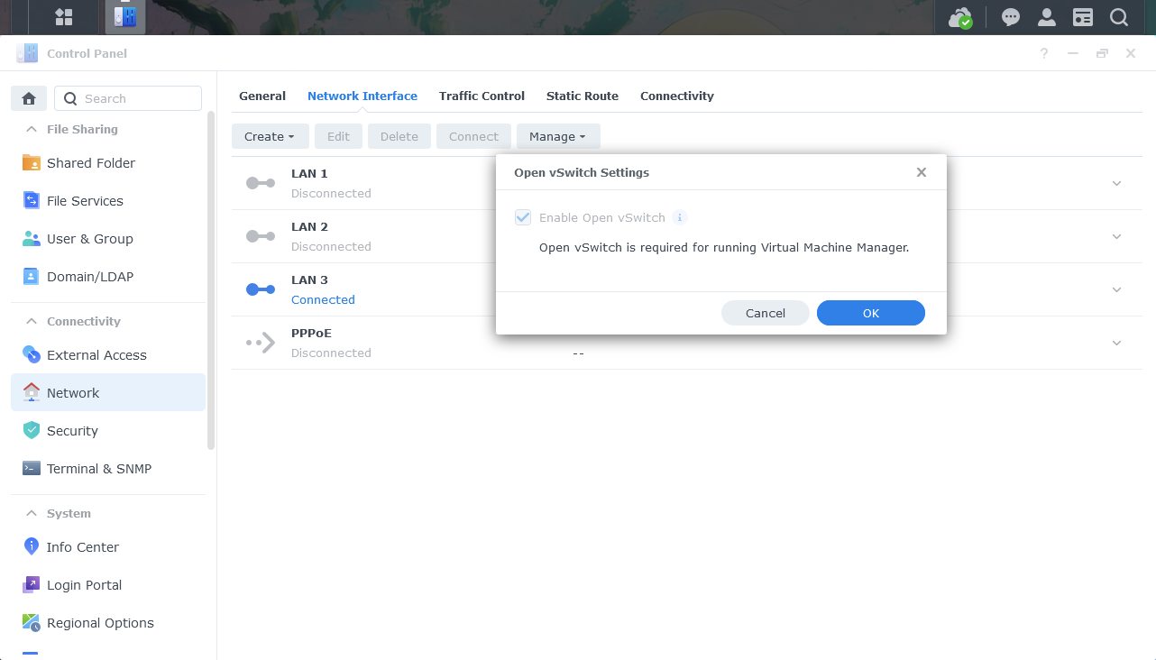 เช็คได้จาก Control Panel > Network > Network Interface > Manage > Open vSwitch Settings ถ้ามีติ๊กถูก แสดงว่าต้องใช้ ovs_eth0